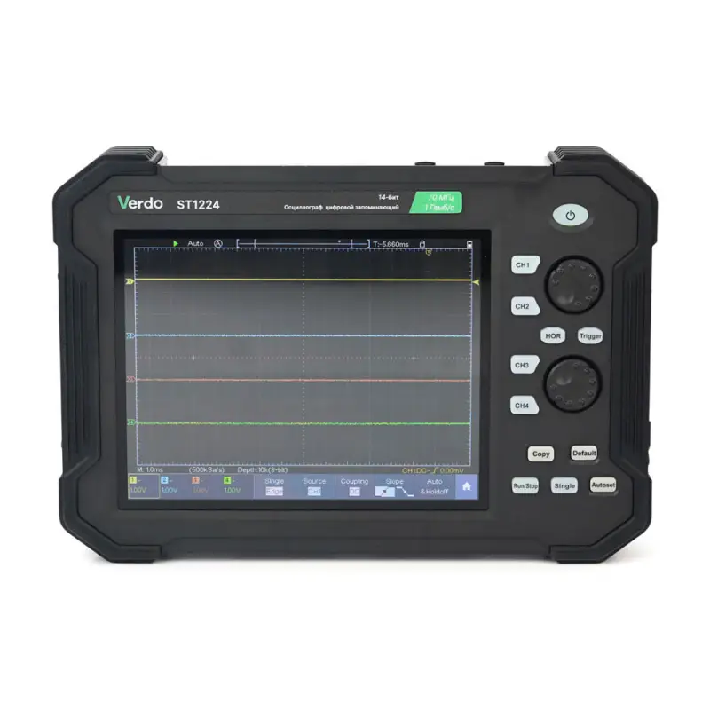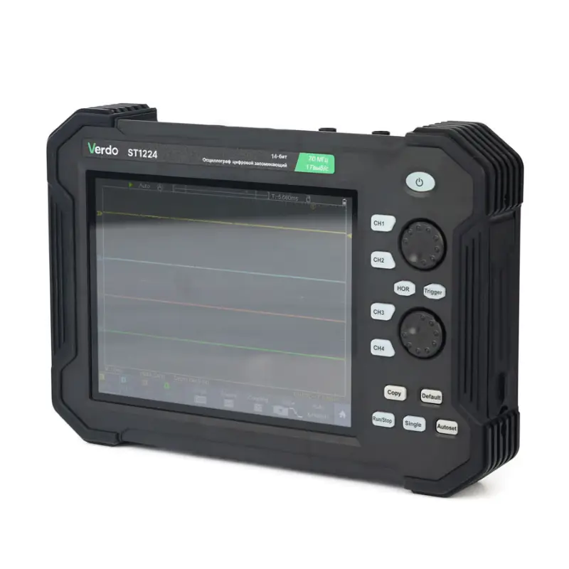 Осциллограф VERDO ST1224 представляет собой современный планшетный прибор, сочетающий высокую производительность с удобством использования. Благодаря компактному форм-фактору и 8-дюймовому дисплею он обеспечивает комфортную работу как в лабораторных условиях, так и в полевых. Прибор внесен в ГосРеестр СИ под номером 90665-23, что подтверждает его соответствие российским стандартам точности и надежности.